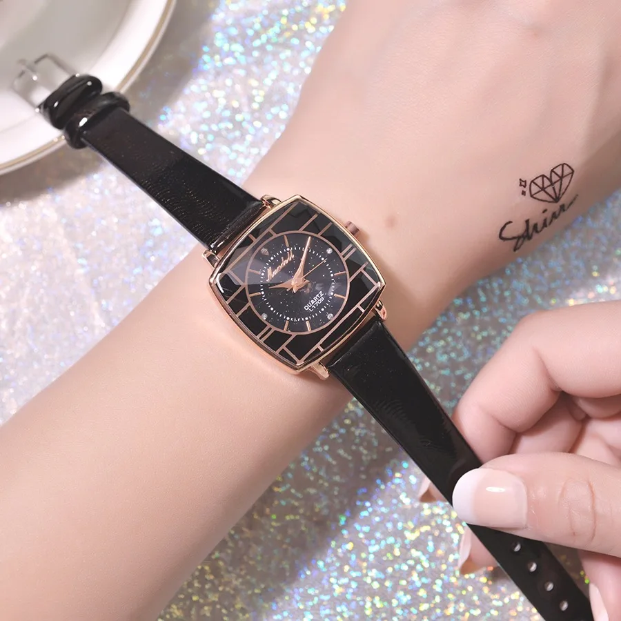 Женские часы брендовые кварцевые наручные часы женский кожаный пояс аналоговые кварцевые квадратные корейские роскошные часы со стразами ...