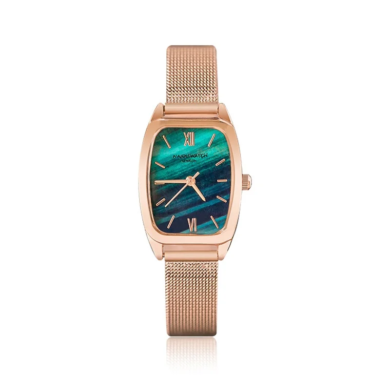 Элегантные прямоугольные женские часы, магический дизайн циферблата, женские модные кварцевые часы, роскошные часы из розового золота со стальным сетчатым ремешком, женские часы