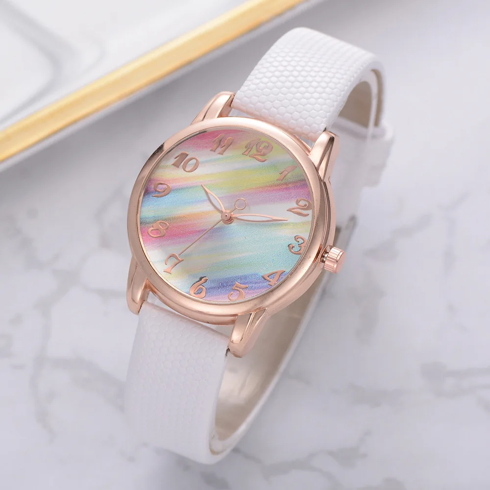 Женские Модные радужные часы наручные часы с кожаным ремешком повседневные женские часы женские кварцевые часы Relogio Feminino Montre Femme