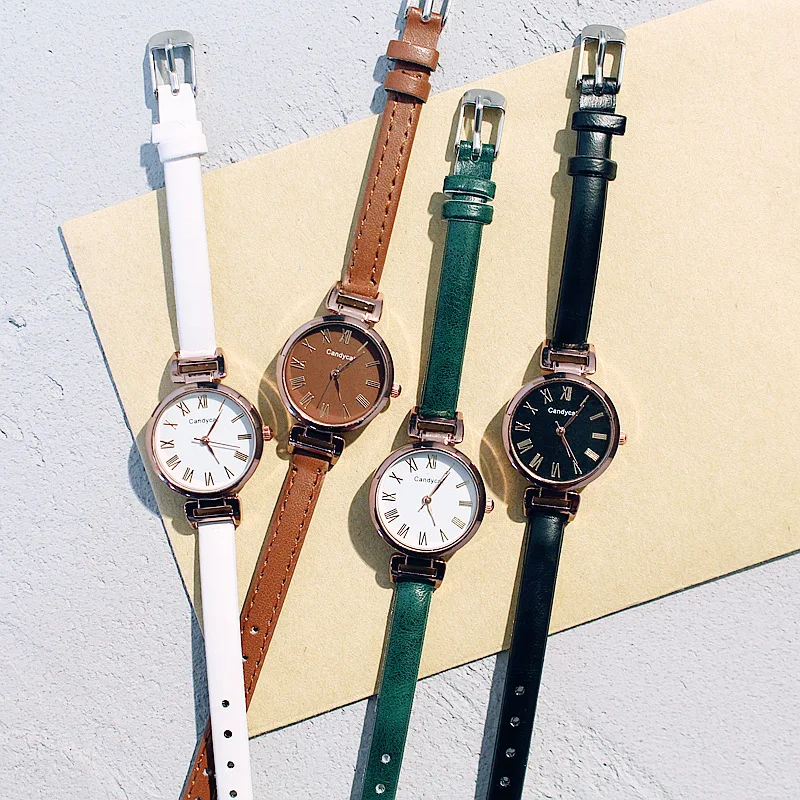 Женские часы кожаный тонкий ремешок браслет кварцевые наручные часы коричневый черный красный часы женские наручные часы Женская мода