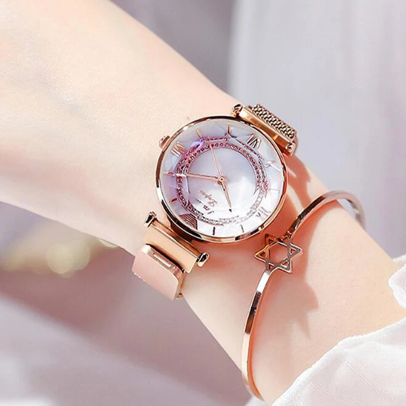 Лидер продаж Магнит пряжка звездное небо для женщин часы 2019 женские наручные часы розовое золото Роскошные римская цифра подарок часы relogio ...