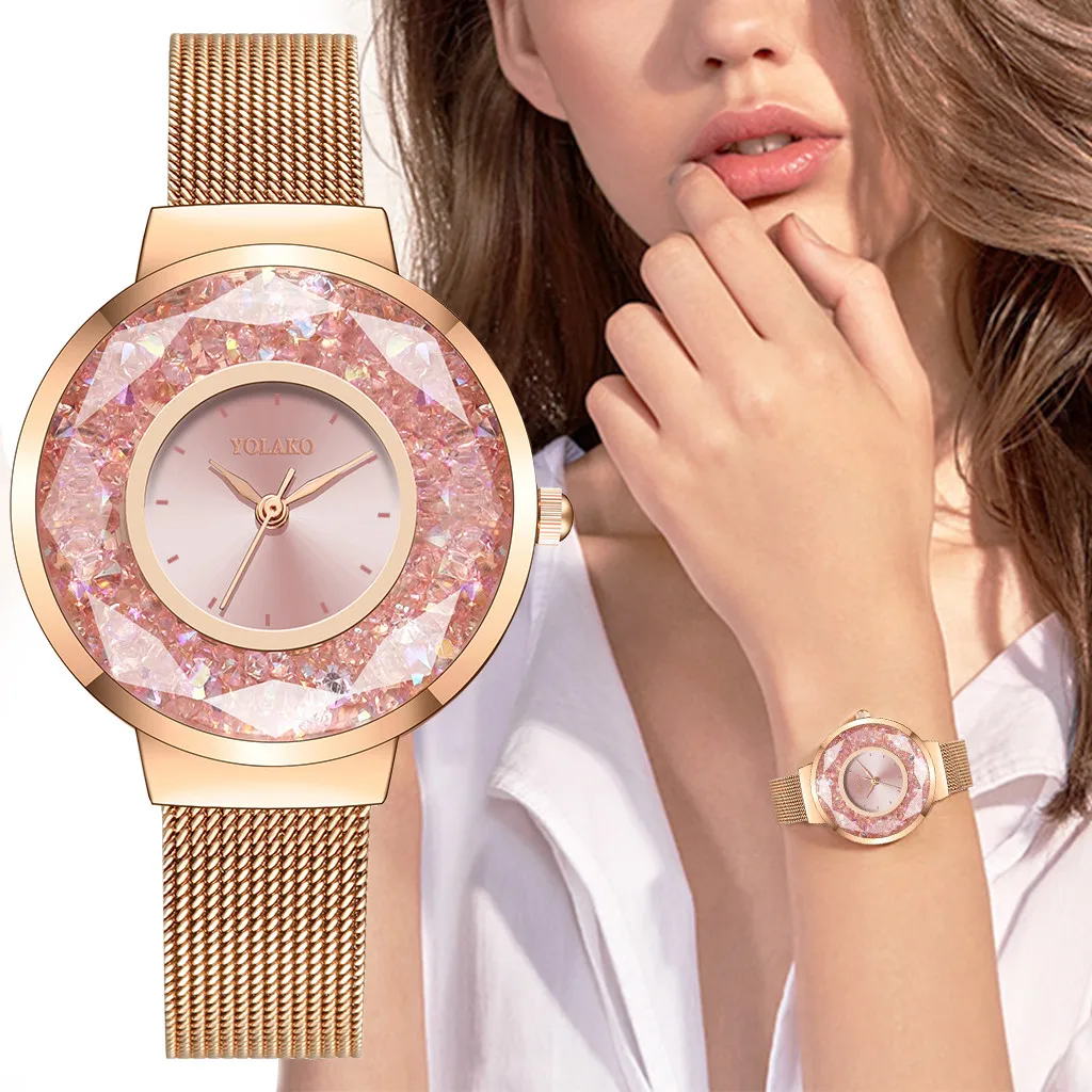 YOLAKO, роскошные женские часы, повседневные кварцевые часы из нержавеющей стали с ремешком Newv, аналоговые наручные часы, Дамский подарок