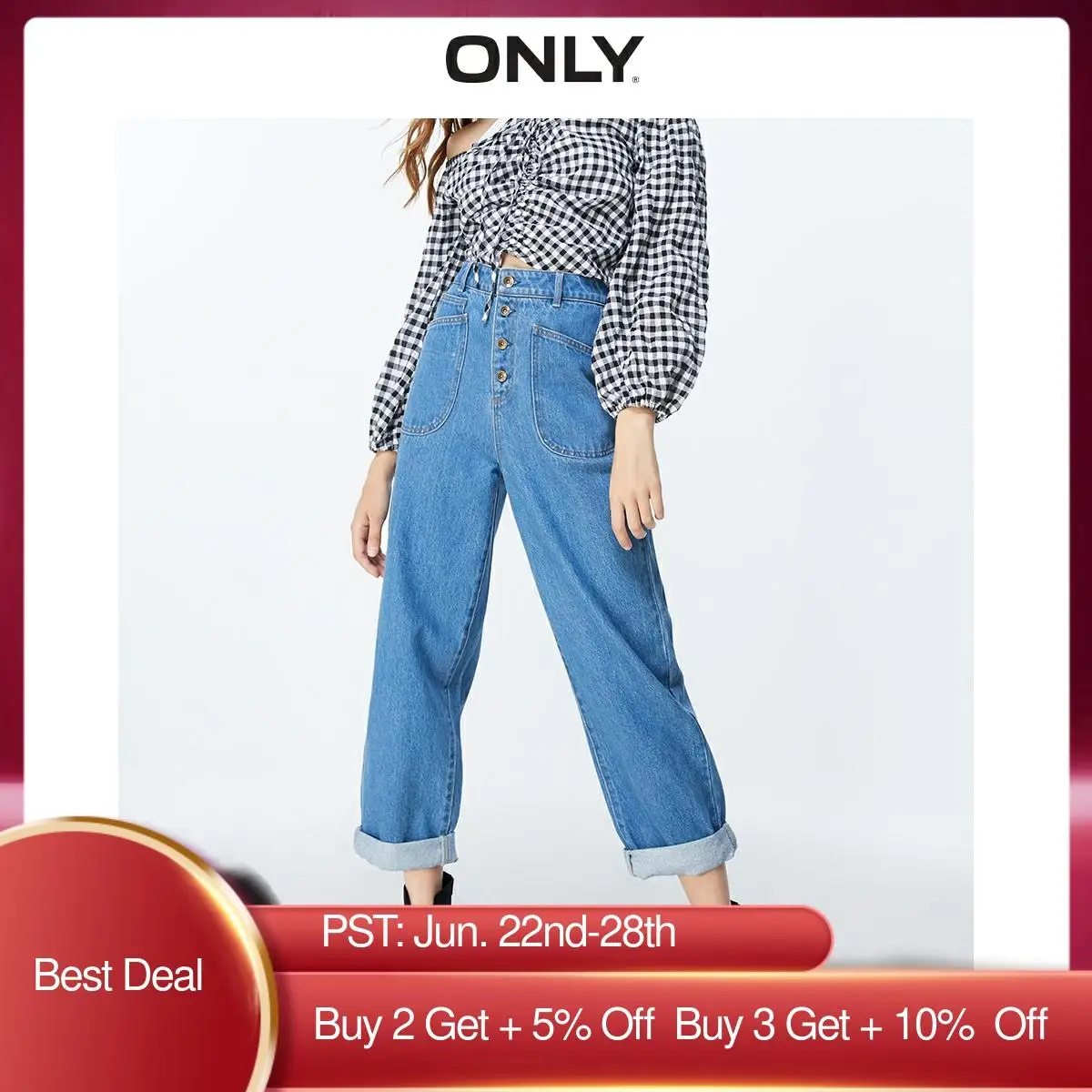 Только в том случае, Для женщин свободный крой с высокой посадкой прямого покроя укороченные джинсы | 119349602