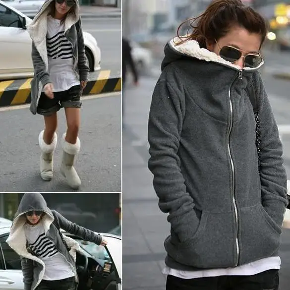 Бесплатная страуса толстовки Теплая зима Толстовка Для женщин карман на молнии с длинными рукавами Harajuku плюс размер sudadera mujer S40