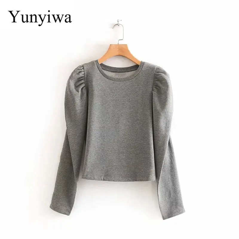 Новинка 2019, женские модные однотонные повседневные свитшоты с пышными рукавами, женские осенние толстовки с круглым вырезом, базовые флисовые толстовки, шикарные топы