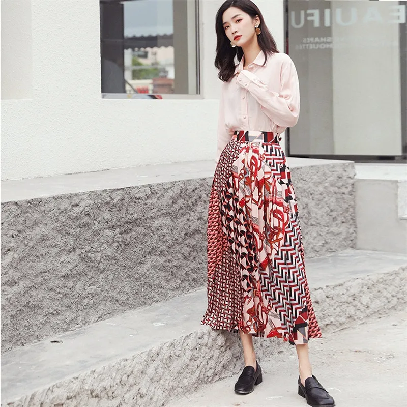 Женский комплект из двух предметов High street, новинка 2020, женские хлопковые топы с пышными рукавами, блузка с высокой талией, эластичная атласная длинная юбка YNZZU YT849