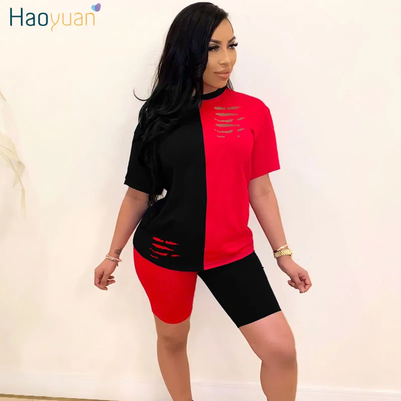 HAOYUAN/комплект из двух предметов; Летняя одежда для женщин; Спортивный костюм; Комплект из топа и байкерских шорт; Спортивные костюмы; Одежда для отдыха
