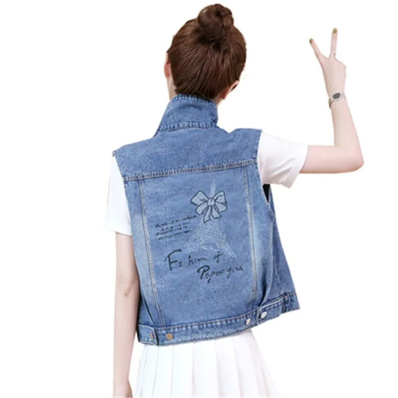 Женский джинсовый жилет размера плюс 5XL на весну и лето, приталенная джинсовая куртка без рукавов с принтом, женское короткое пальто, винтажный жилет, женские топы