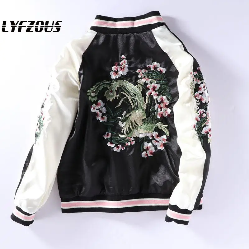 Новая куртка-бомбер с вышивкой вишни для женщин, повседневные топы с длинными рукавами, куртки на молнии, верхняя одежда, свободные топы, баз...
