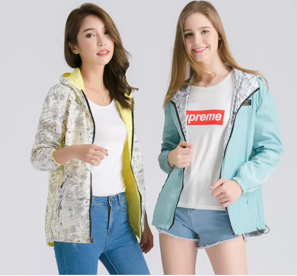2019 женская простая куртка-пальто, весенне-осеннее пальто на молнии с капюшоном, Двусторонняя одежда с рисунком, верхняя одежда, Свободное па...
