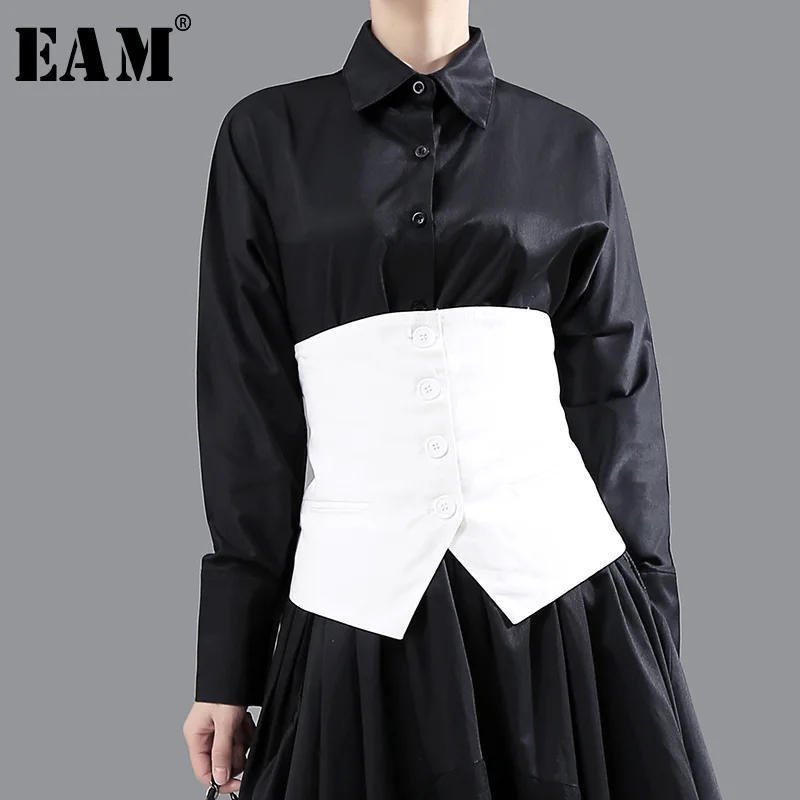 [EAM] Женский Черный Асимметричный жилет свободного кроя с разрезом на пуговицах, новый модный жилет без рукавов, весна-осень 2020, 1N839