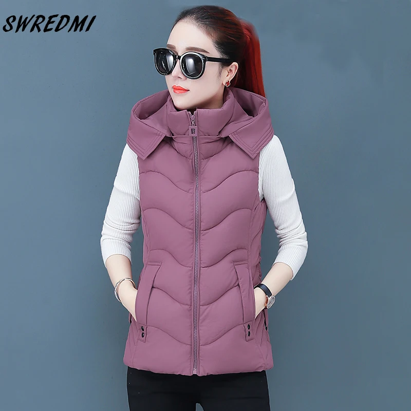 SWREDMI зимний женский жилет куртка с капюшоном пальто без рукавов осень зима жилет для Famle Mujer молния зеленый жилет Зимняя одежда M-3XL