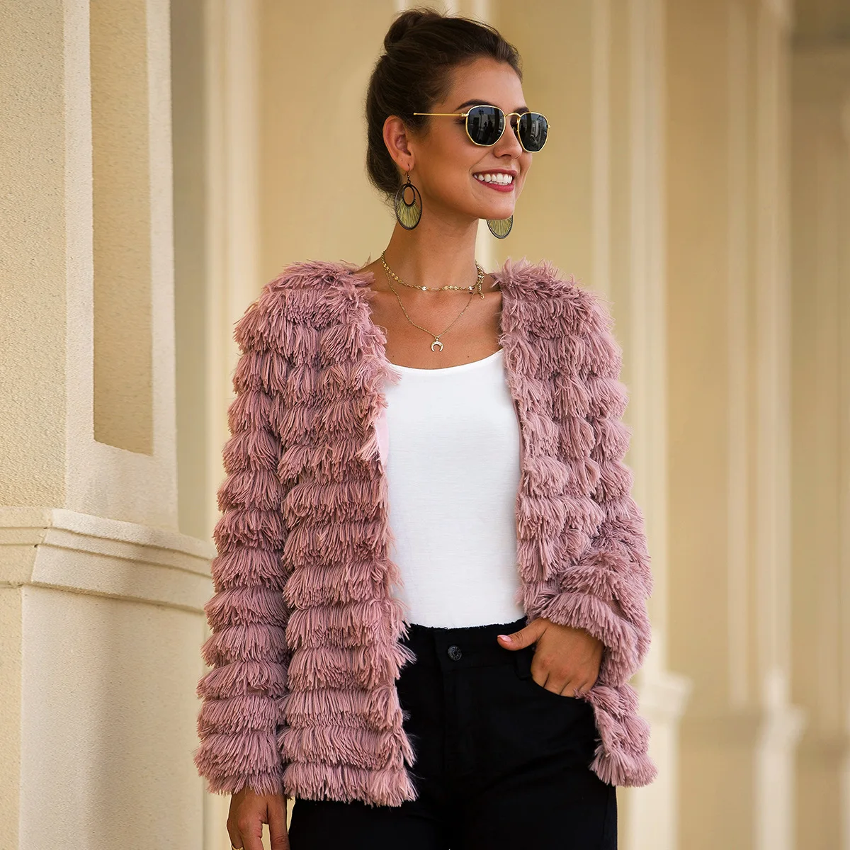 2019 зимнее пальто из искусственного меха женская розовая Меховая куртка элегантная свободная меховая верхняя одежда розовый кардиган мехов...