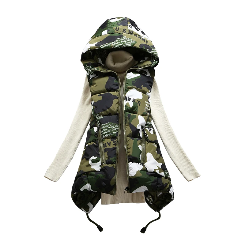 Женский хлопковый жилет с капюшоном, длинный Камуфляжный жилет, Новое поступление 2020