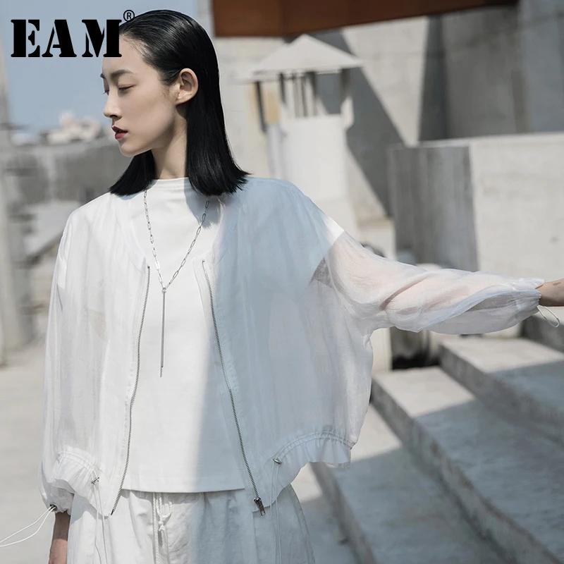 Женская куртка EAM, белая Свободная куртка большого размера с воротником-стойкой и длинным рукавом, Весенняя мода 2020 1W035