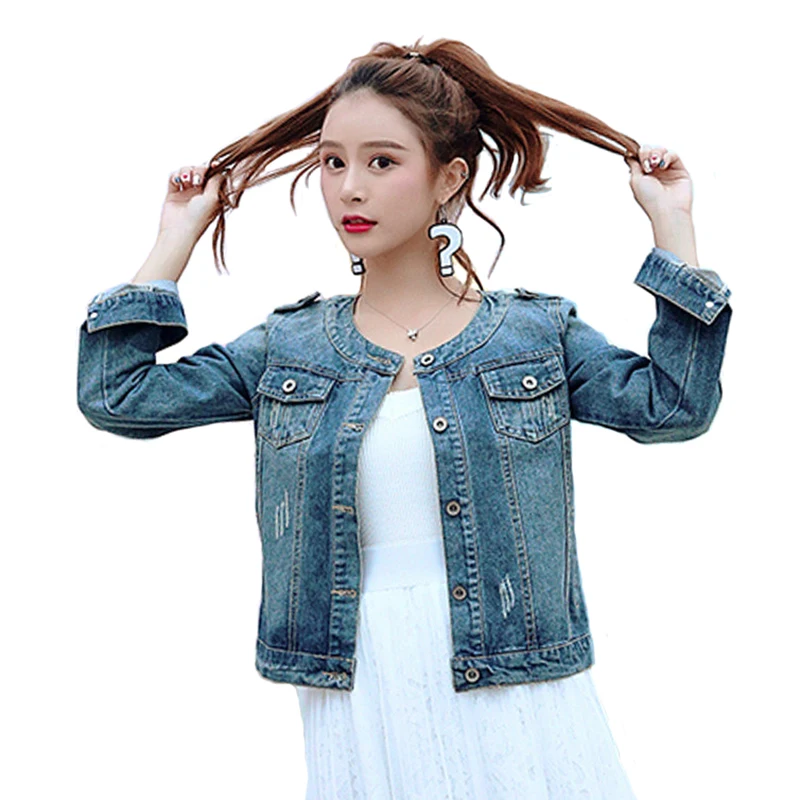Осенне-весенняя Корейская женская джинсовая куртка с дырками 2019 свободная Потертая джинсовая куртка-бомбер, где мой ум синее пальто женска...
