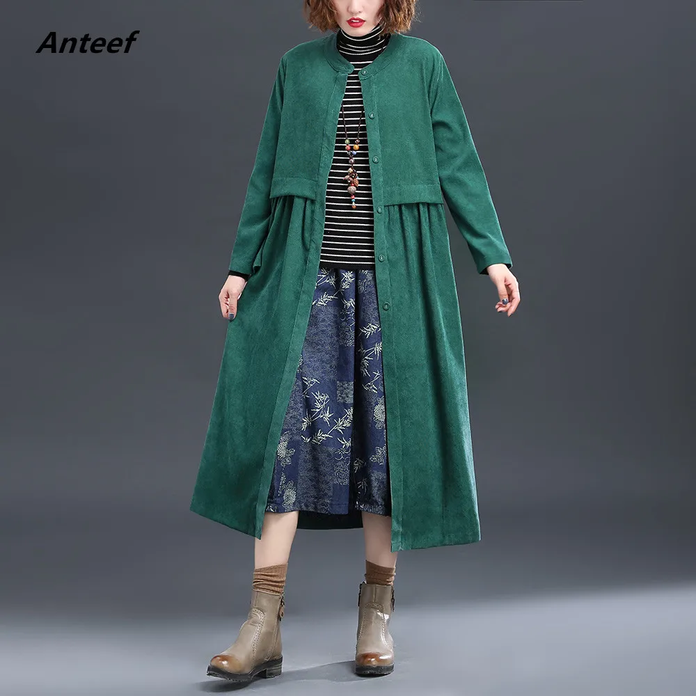 Вельвет размера плюс негабаритный винтажный Женский Повседневный Свободный Длинный осенний женский плащ 2019 верхняя одежда