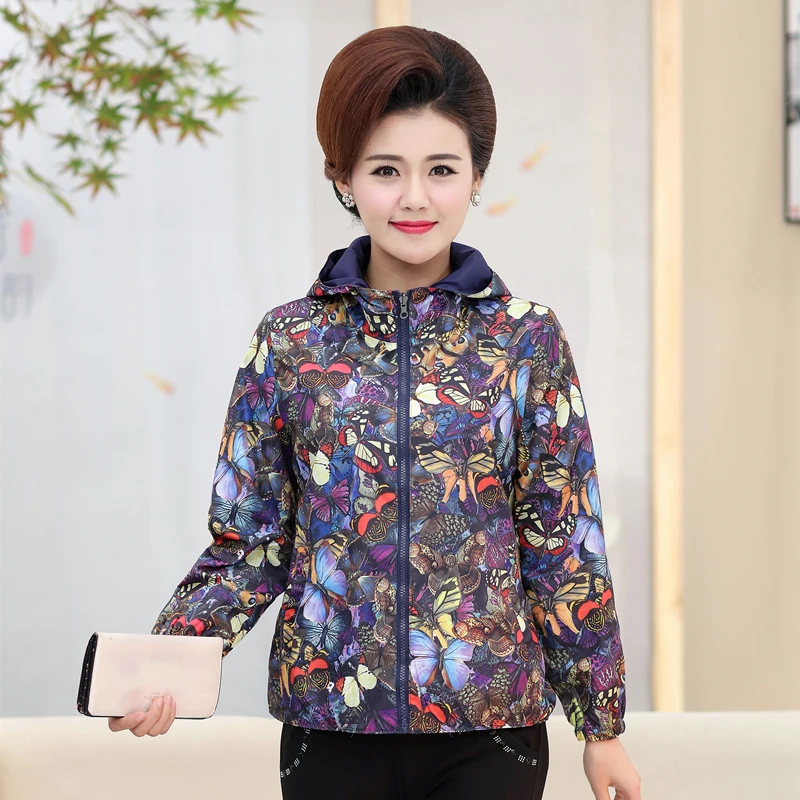 Двусторонняя одежда размера плюс, куртка для мамы, пальто с капюшоном и принтом, женские топы, весна-осень 2019, длинный рукав, цветочный узор, на молнии, повседневная верхняя одежда