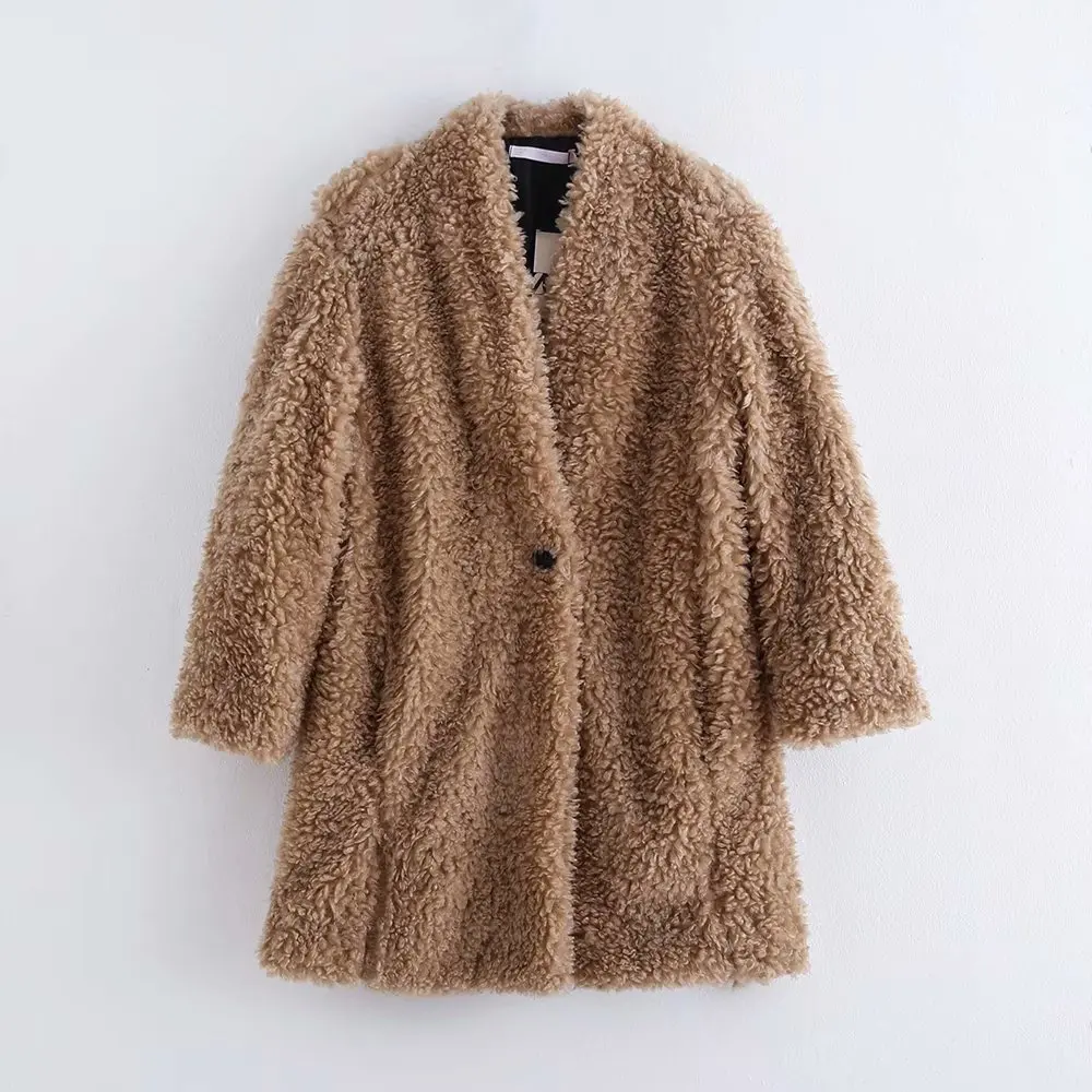 Осенне-зимняя модная длинная флисовая куртка 3 цветов 2019 Стильное женское кашемировое пальто на одной пуговице повседневная одежда для дев...