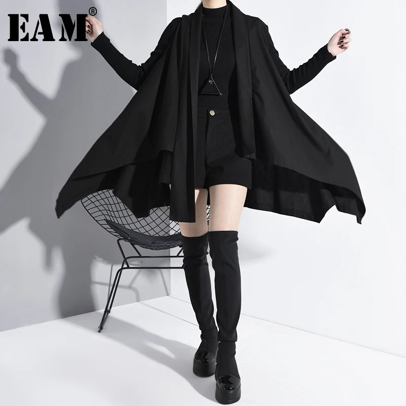 [EAM] женский жилет свободного кроя черного цвета с асимметричным подолом большого размера Новый Модный жилет без рукавов с v-образным вырезо...