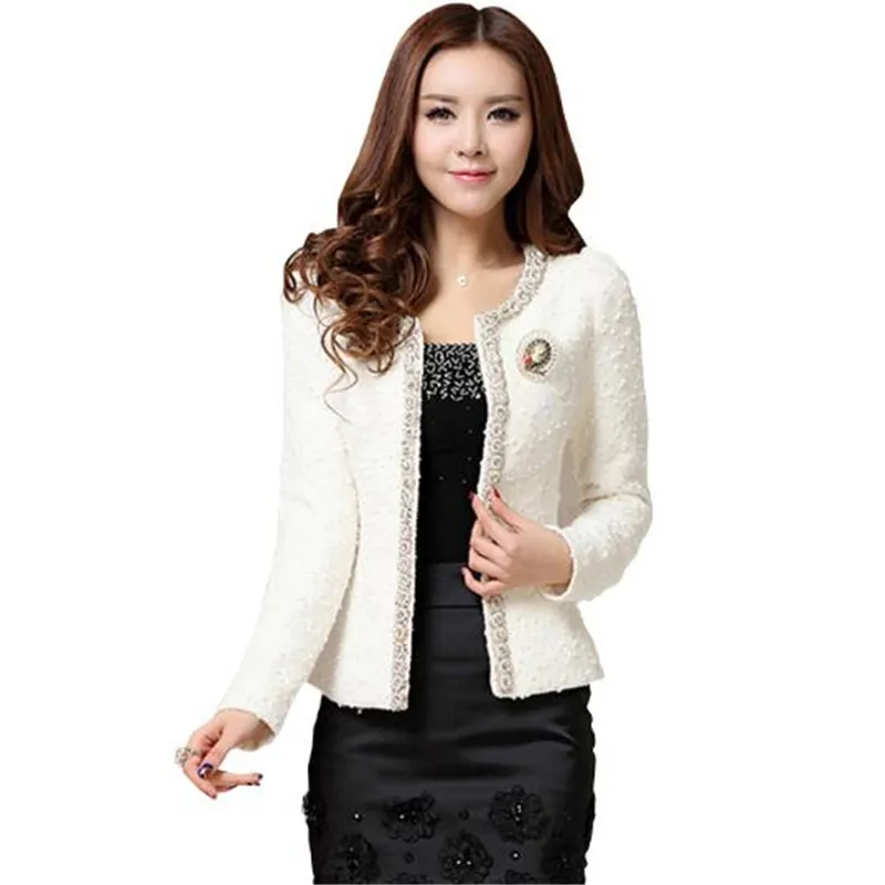 Новинка 2018 г. осень весна пальто короткие дизайн для женщин верхняя одежда элегантный бисером алмаз Тонкий с длинным рукавом плюс размеры