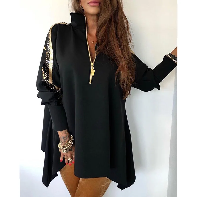 Повседневное блестящее пальто, женская куртка с блестками размера плюс S-2XL, женская Свободная верхняя одежда на молнии с длинным рукавом, Же...