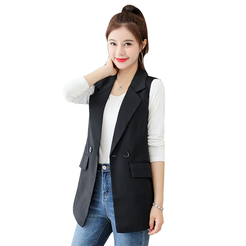 Женский жилет черного цвета с пуговицами размера плюс, новинка 2020, элегантный жакет без рукавов, женское весеннее пальто с отложным воротником, тонкий летний жилет