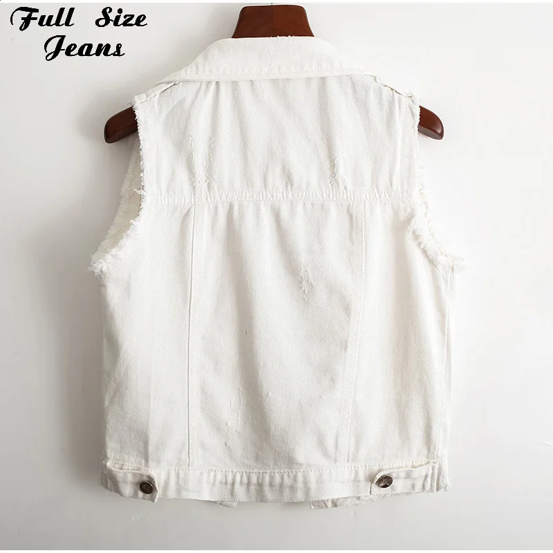 Летний Шипованный потертый женский белый джинсовый жилет без рукавов топы 4Xl 5Xl Женские куртки женская верхняя одежда уличные джинсы
