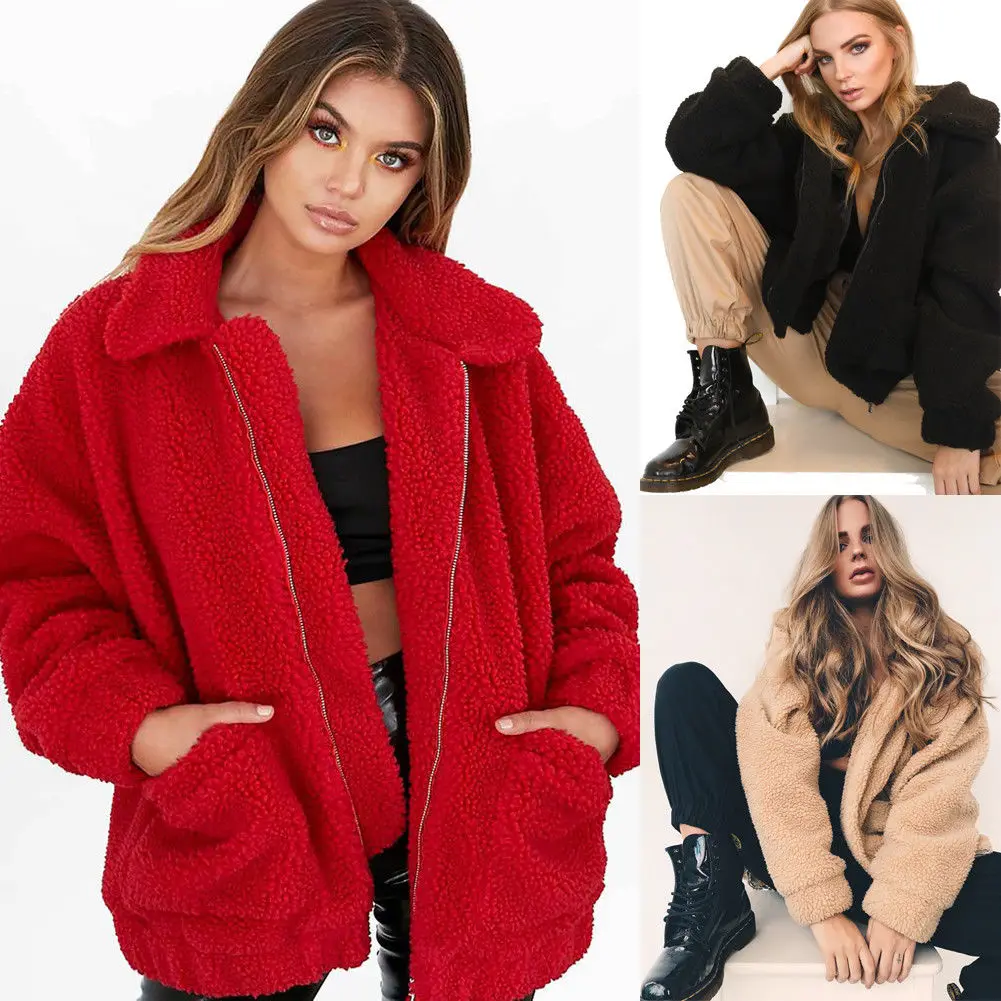 Женская шуба Simplee цвета хаки, куртка из овечьей шерсти, теплая короткая куртка из искусственного меха на молнии на осень и зиму