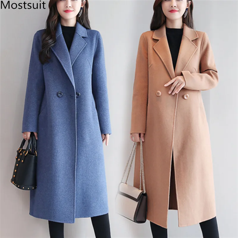 Женское длинное шерстяное пальто на одной пуговице для зимы и осени размера плюс, элегантные пальто и куртки с отложным воротником для офис...