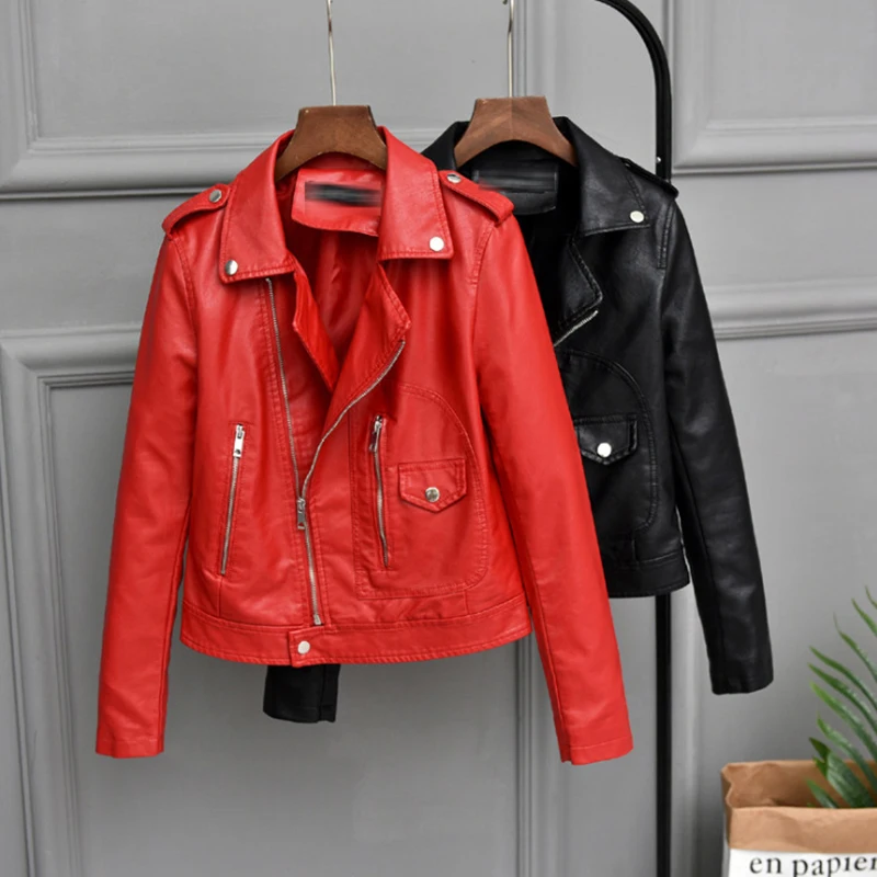 2019 Осень Новый женский жакет из искусственной мягкой кожаные пальто Для женщин красный/черный/коричневый короткие Корейская верхняя одежд...