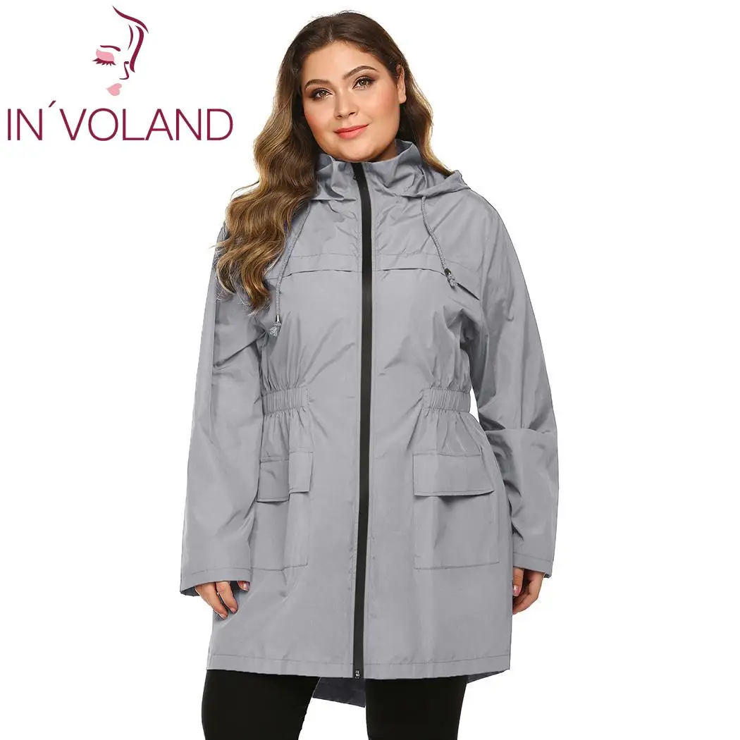 IN'VOLAND Женское пальто размера плюс Повседневная ветровка с Капюшоном Легкая однотонная куртка на молнии с длинным рукавом женская уличная к...
