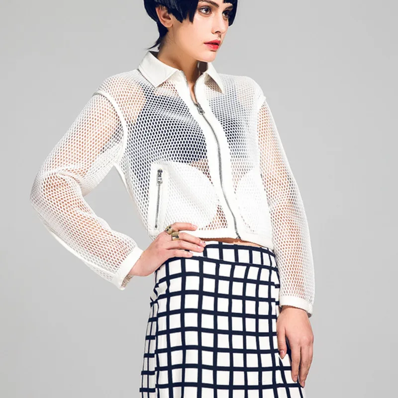 LANMREM 2020 новая весенняя и летняя Высокая уличная Женская одежда с отложным воротником из тюля короткая куртка WK98600XL