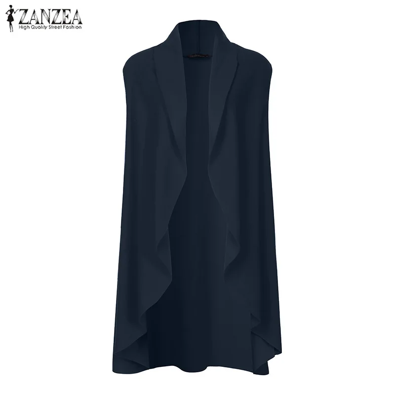 ZANZEA, женские жилеты, повседневный Свободный кардиган без рукавов, мода 2019, Chaqueta Mujer размера плюс, одноцветные пальто, куртки, верхняя одежда, ...