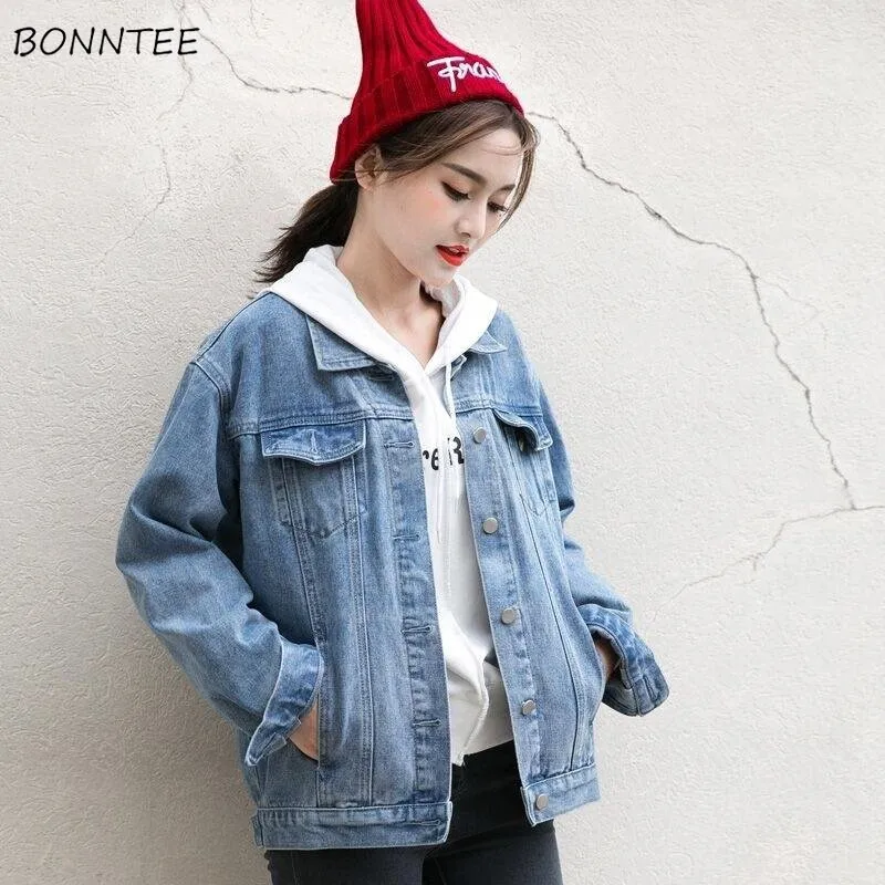 Куртки женские уличные Ulzzang однотонные весенне-осенние модные новые джинсовые женские корейские стильные свободные Универсальные женские ...