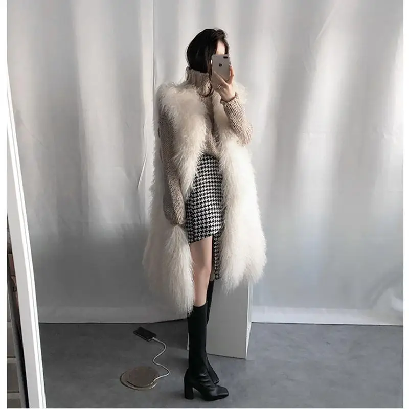 Пушистая зимняя куртка 2019, Длинный Элегантный меховой жилет, теплая Женская куртка, теплый зимний свободный меховой жилет, женская одежда, р...