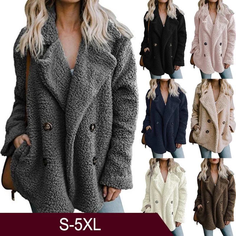 Пальто женское, с мехом ягненка, плюшевое, плотное, повседневное, однотонное, зимнее, из искусственного меха, флисовое, с отворотом