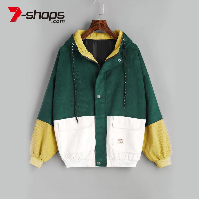 Ccibuy11 Куртка женская теплая блочная Вельветовая куртка с капюшоном на шнурке хит цвета лоскутный карман Толстая Базовая Женская Куртка Harajuku