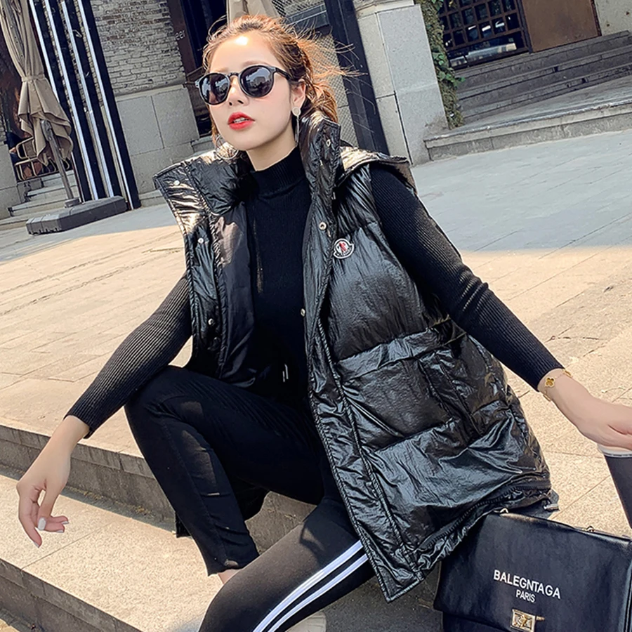 Новинка 2020, Модный хлопковый пуховый жилет, Женское пальто без рукавов, Женская Повседневная теплая непродуваемая куртка с капюшоном, жилет из полиэстера и хлопка