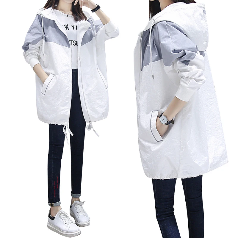 Модный женский цветной плащ в стиле пэчворк, новинка 2020, весна-осень, Повседневная Верхняя одежда средней длины с капюшоном, Женская ветровка, одежда