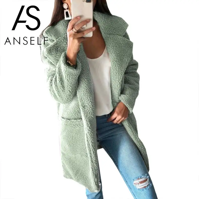 Повседневное пальто из искусственного меха для женщин, однотонное, лохматое, тонкое, плюшевое пальто, воротник, карманы, длинный рукав, флис,...