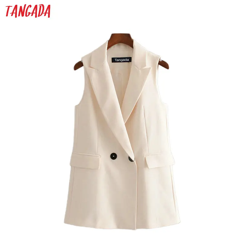 Женский бежевый Длинный жилет Tangada, офисный жилет без рукавов, двубортный пиджак, элегантная верхняя одежда, 3H465