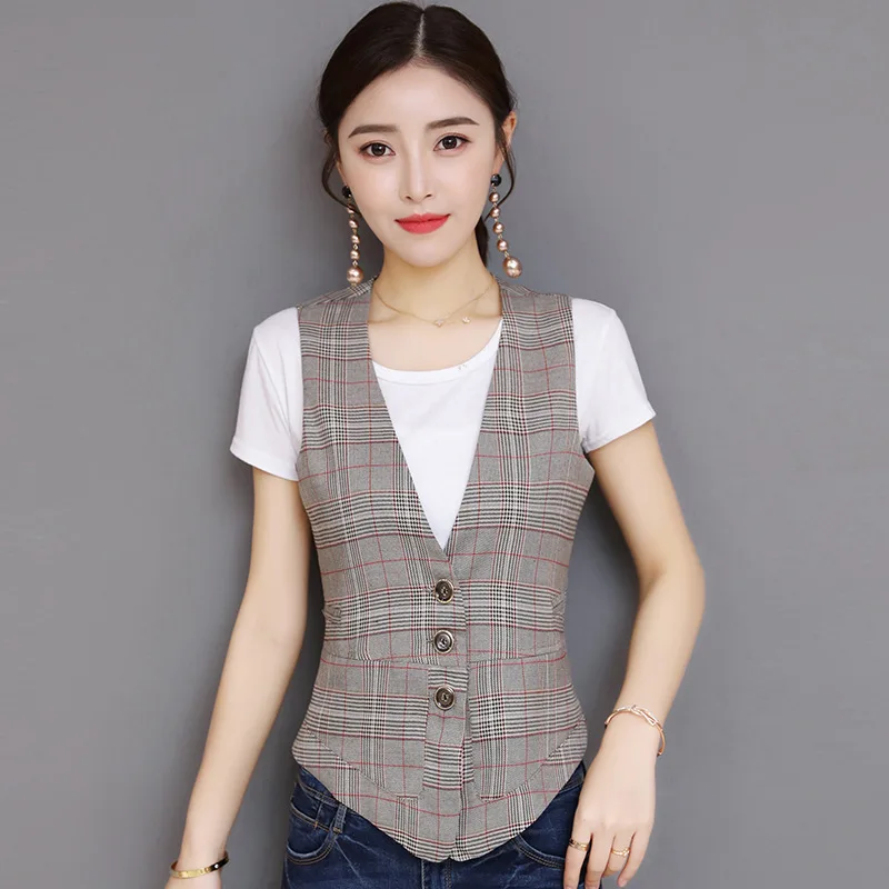Женский клетчатый жилет #0704, короткий тонкий блейзер без рукавов большого размера 4XL
