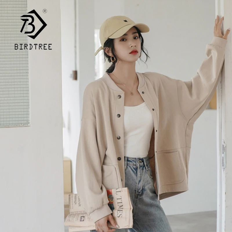 Женская Повседневная Свободная Толстовка с круглым вырезом и длинным рукавом, бейсбольная куртка сплошная на пуговицах, новинка весны 2020, C01808M
