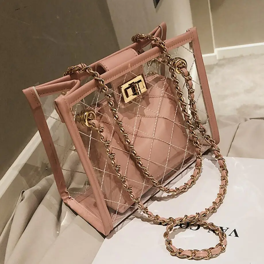 Прозрачный желе большая сумка Мода 2019 г. Новый высокое качество ПВХ женские дизайнерские сумочка большой емкости цепи плеча курьерские Сум...