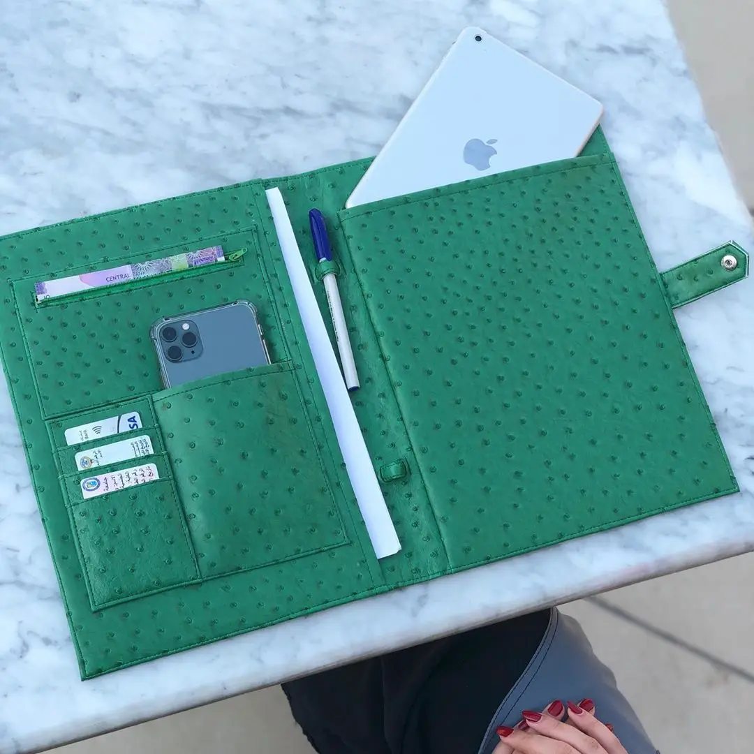 Подгонянный А4 держатель для файлов модный вышитый Страус шаблон Блокнот для Ipad Держатель Новый Бизнес Сумка для документов большой Porfolio