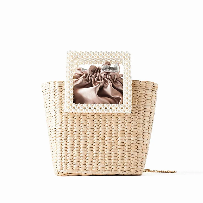 Женская жемчужная соломенная сумка, модная дизайнерская плетеная Сумка-тоут, летняя пляжная сумка на шнурке, богемные сумки с жемчужными ручками SS3643