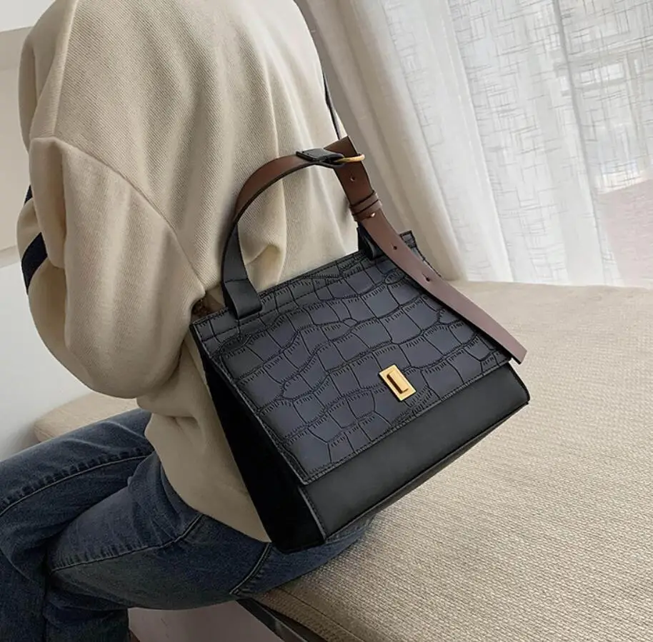 Элегантная женская сумка-тоут 2020 модная Новая высококачественная женская дизайнерская сумка из искусственной кожи контрастного цвета сумка через плечо