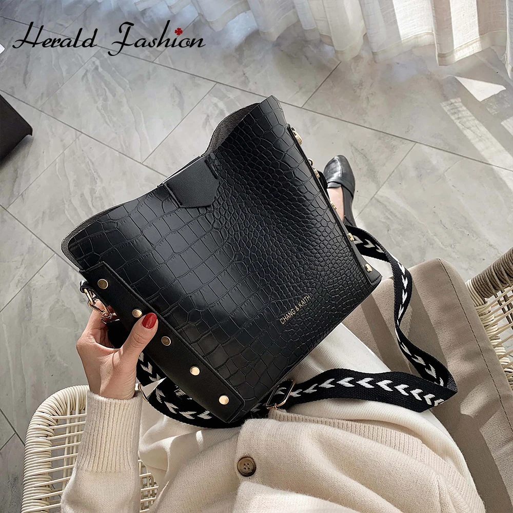 Сумка-мешок из крокодиловой кожи, женская сумка с узором «Аллигатор», вместительная повседневная женская сумка-мессенджер через плечо, черная сумка