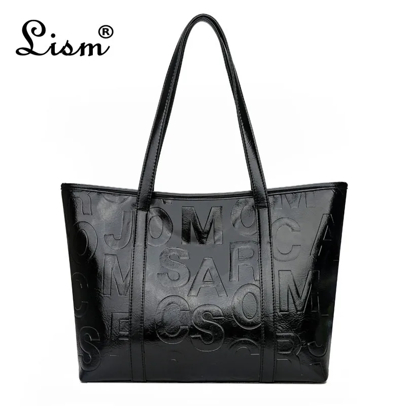 Брендовая роскошная женская сумка, новинка 2020, Большая вместительная сумка, дизайнерская сумка с буквенным принтом, мягкая сумка через плечо из искусственной кожи, черный цвет